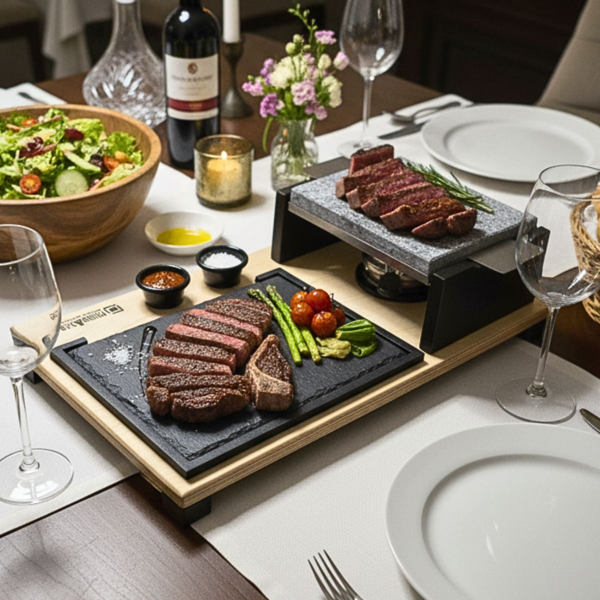 - Cocción Precisa: Permite a cada invitado cocinar su porción exactamente al punto deseado (poco hecha, al punto o bien cocida).